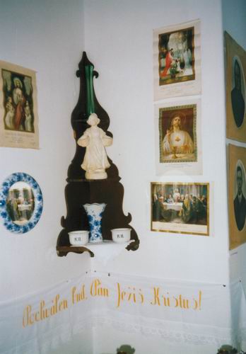 navštivte výstavu - v budově školy, paní starostka koštuje, šaty dělají člověka, obrázky, naši předci, kde se sedávalo, šátky, kuchyň, závěr expozice