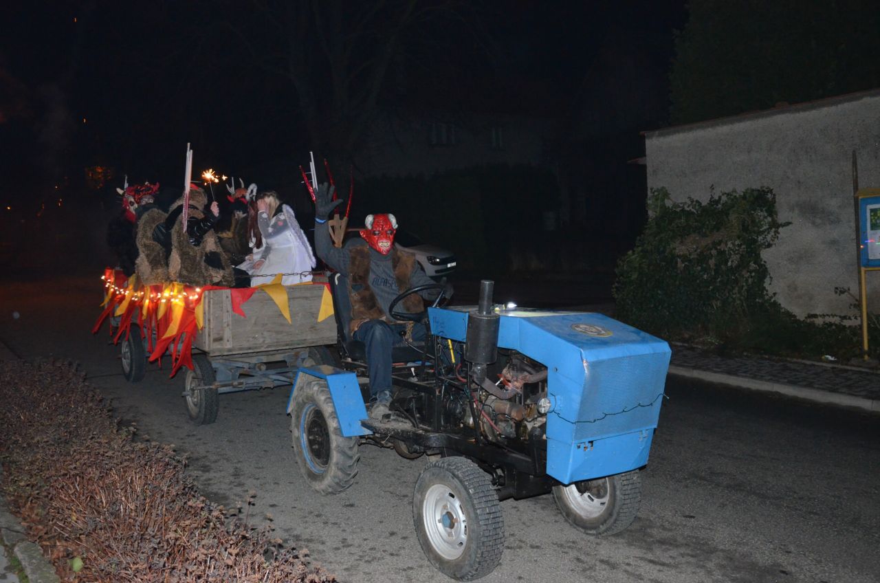Že se k nám chystá Mikuláš se svou družinou, jsme se dozvěděli ve čtvrtek 6. prosince již ráno v mateřské školce. Tam totiž naděloval hned po snídani v devět hodin. Byl spokojený, protože děti ho přivítali jako malí čertíci i andílci. Měli připraveno spoustu básniček, dokonce písničky i čertovské tance. Odpoledne se obcí prohnala pekelná jízda. Lucifer na svém pekelném stroji nejprve objel několikrát obec i s čertovskou cháskou na voze. Na voze vezli kotel s hříšníky nebo pro hříšníky? Nakonec se přítomní dočkali i Mikuláše s anděly, kteří kráčeli od kostela a objevili se v uličce od Rýparového. Předcházel je velký dým, rachot a ohně. Ještě před příchodem této družiny si přítomní poslechli adventní písně zahrané na trubky. Mikuláš poté odehnal čerty a nadělil s anděly dětem dárečky. Odvážnější děti řekly i básničku nebo dokonce zazpívaly filmovou písničku Anděl páně. U některých ale došlo i na slzičky a některým došla řeč. Čerti totiž nebyli daleko a zpytovalo se svědomí. Dostalo se na všechny děti a dospěláci si zase po roce pochutnali na punči, čaji, horkém moštíku, pekelném guláši a boží vánočce. Mikulášská družina se pak rozloučila, neboť se ještě přesouvala do Rouského ověřit svědomí i tamějších dětí.